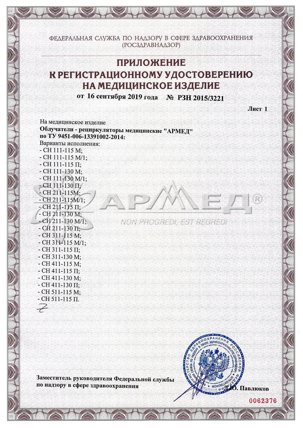Рециркулятор бактерицидный Армед CH 311-130M